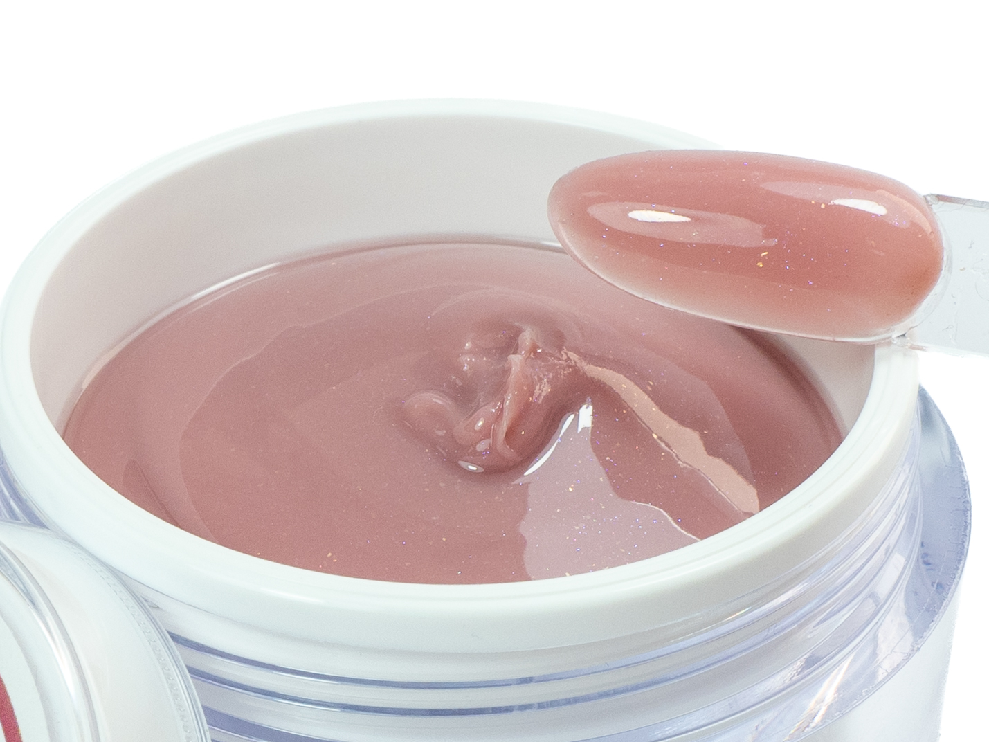 La sua tonalità nude shimmer è perfetta per allungamenti, muretto, baby boomer e coperture naturali, donando all’unghia un aspetto elegante con un leggero riflesso brillante, discreto ma distintivo.