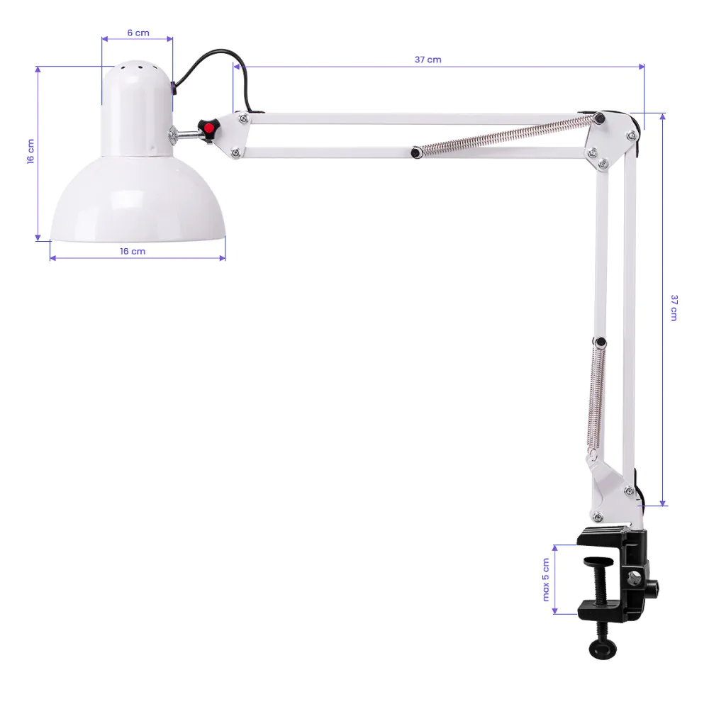 La lampada Clip è uno strumento indispensabile per chi desidera lavorare con precisione, comfort e visibilità ottimale. Pensata per estetiste, onicotecniche, truccatrici e professionisti della bellezza, questa lampada da tavolo si distingue per la sua struttura flessibile e regolabile, che consente di orientare facilmente la luce in base alle necessità specifiche di ogni trattamento.