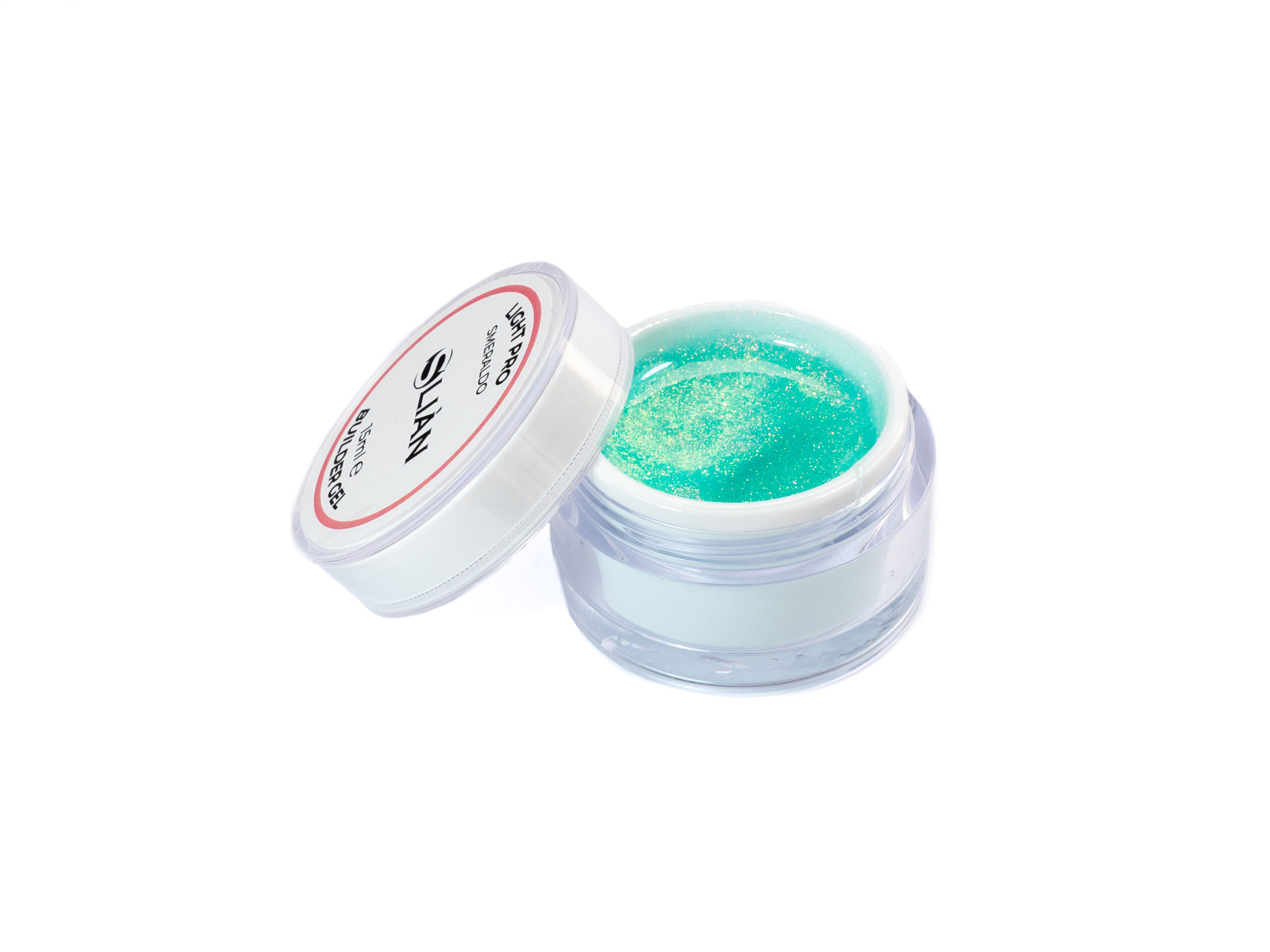 Light PRO Smeraldo è un gel costruttore professionale a medio-alta viscosità, leggermente autolivellante, arricchito con particelle iridescenti multicolore su base verde smeraldo, ideale per creare strutture luminose e d’impatto.