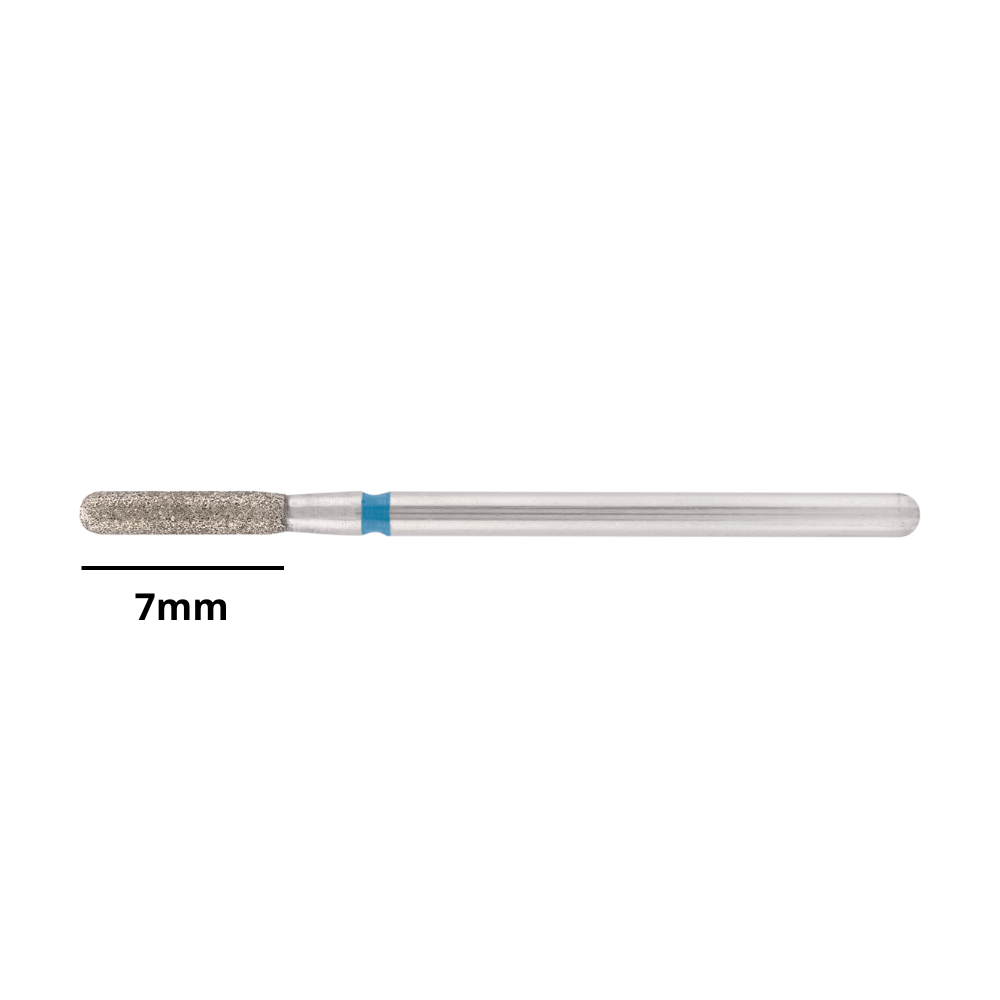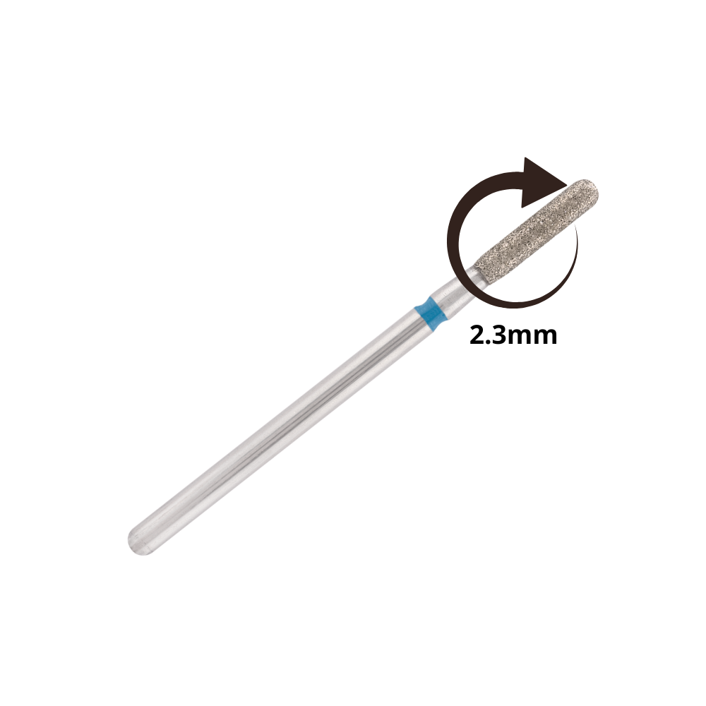 La punta diamantata a cilindro arrotondata blu, con diametro di 2.3 mm e lunghezza abrasiva di 7 mm, è uno strumento altamente professionale progettato per offrire controllo, sicurezza e versatilità durante i trattamenti di manicure dry e preparazione dell’unghia naturale.