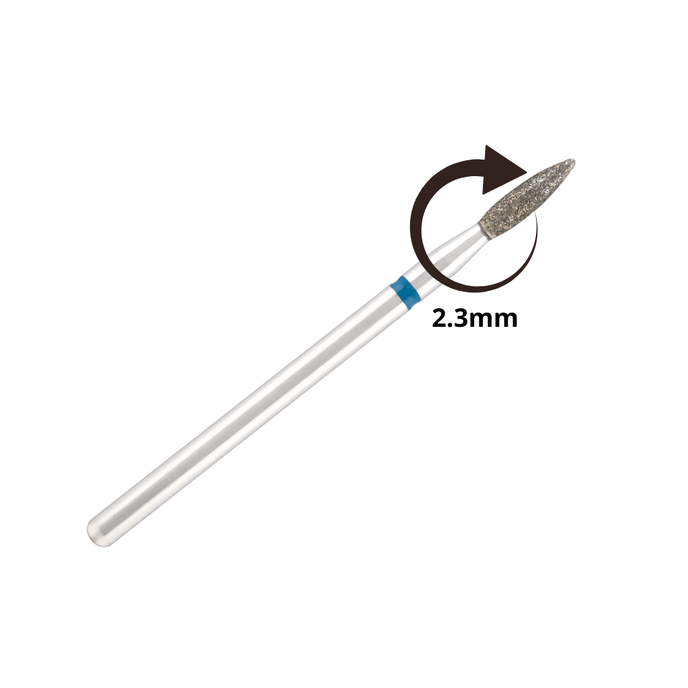 La punta diamantata a fiamma appuntita con grana blu, diametro 2.3 mm e lunghezza della testa 8 mm è uno strumento essenziale per ogni onicotecnica professionista. Progettata per garantire precisione, delicatezza e resistenza, questa punta è perfetta per lavori di dry manicure e dry pedicure, in particolare nella preparazione del giro cuticole.