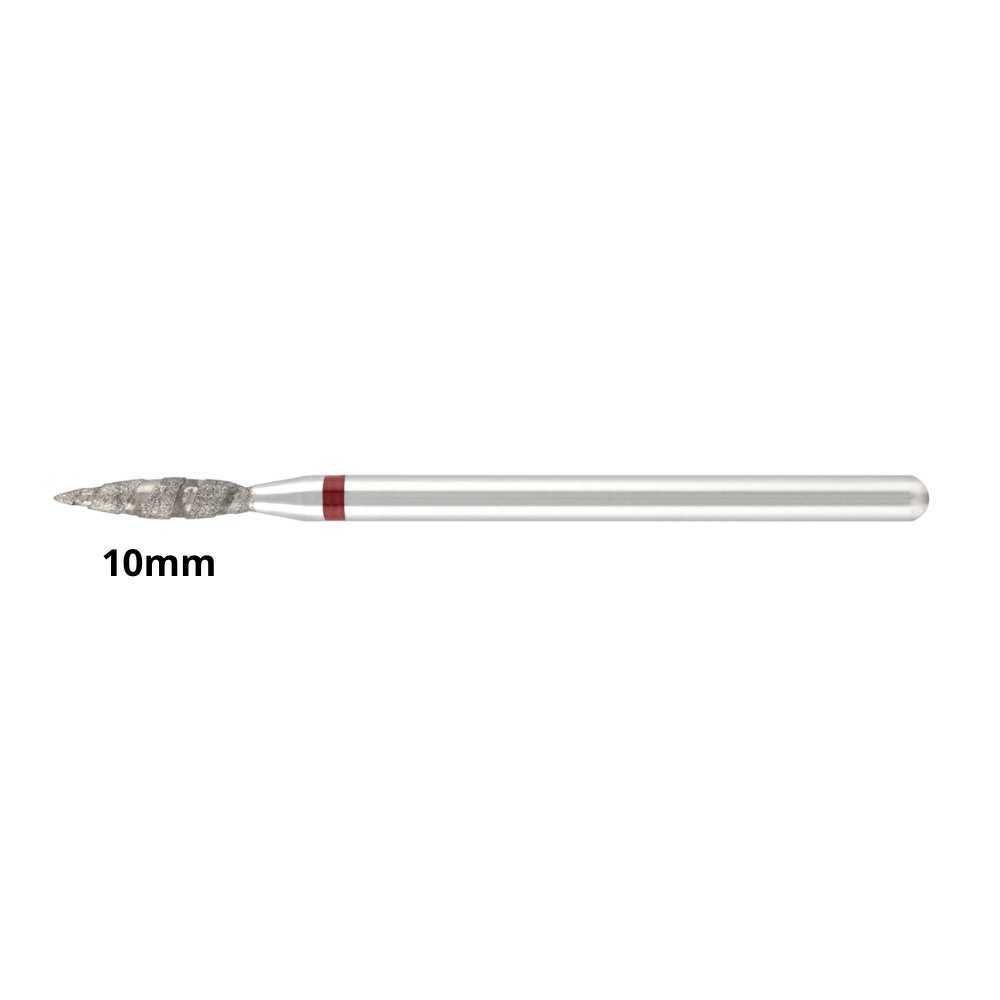 La punta diamantata a fiamma tornado, con grana rossa, diametro 2.3 mm e lunghezza della parte abrasiva di 10 mm, è uno strumento indispensabile per chi desidera lavorare con massima delicatezza e grande copertura di superficie nella preparazione dell’area cuticolare. La forma a fiamma elicoidale (nota anche come tornado) garantisce una rimozione uniforme dei tessuti cheratinizzati con minimo attrito sulla pelle, offrendo una sensazione più morbida e controllata.