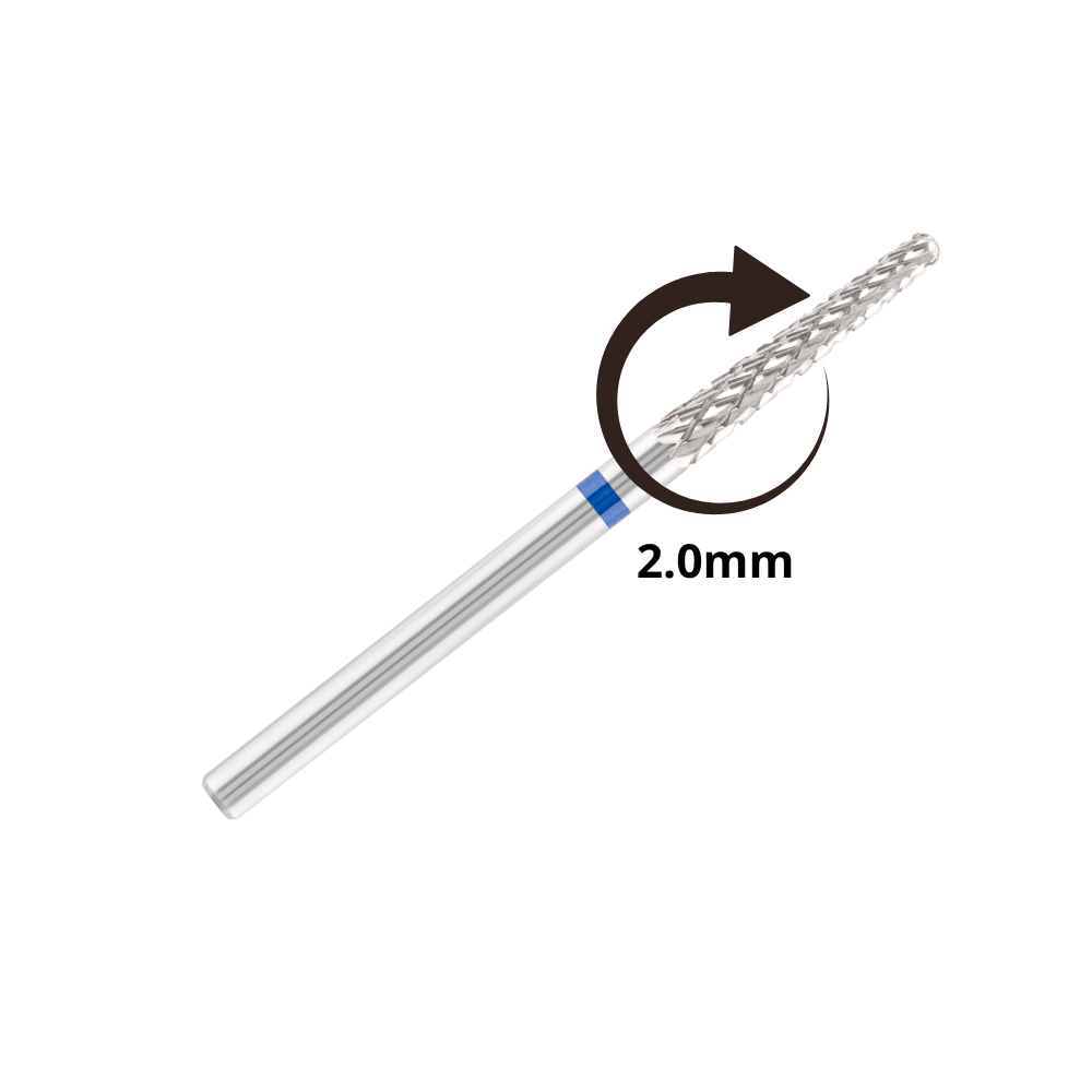 La punta tungsten carbide a cono blu con diametro di 2.0 mm e lunghezza punta di 24.0 mm è uno strumento professionale di alta qualità, ideale per le onicotecniche e i professionisti della cura delle unghie che cercano precisione, durata e versatilità nelle loro lavorazioni.