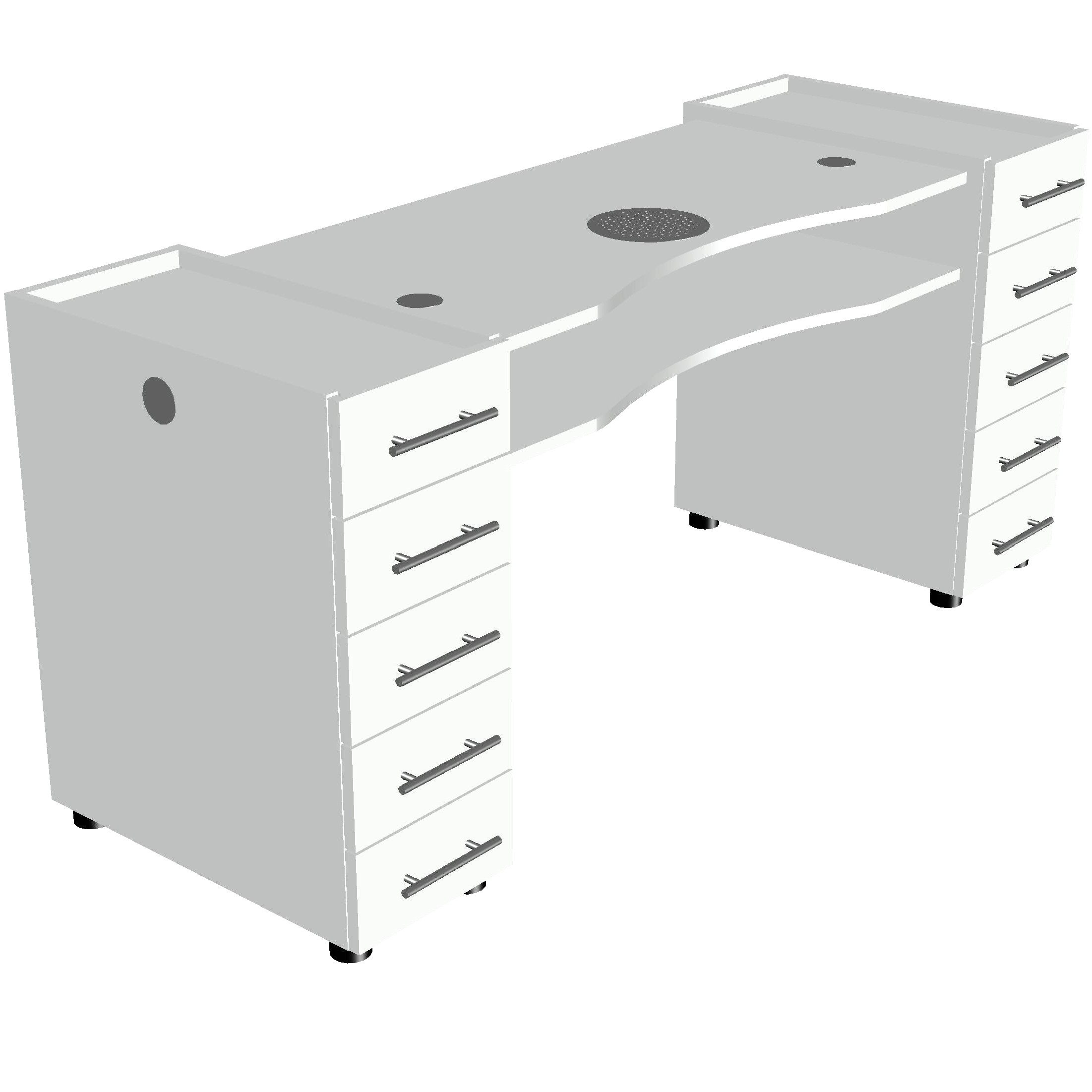 • 2 cassettiere da 30 cm con apertura totale dei cassetti e sistema di chiusura soft-close, per un’organizzazione pratica e professionale dello spazio di lavoro.