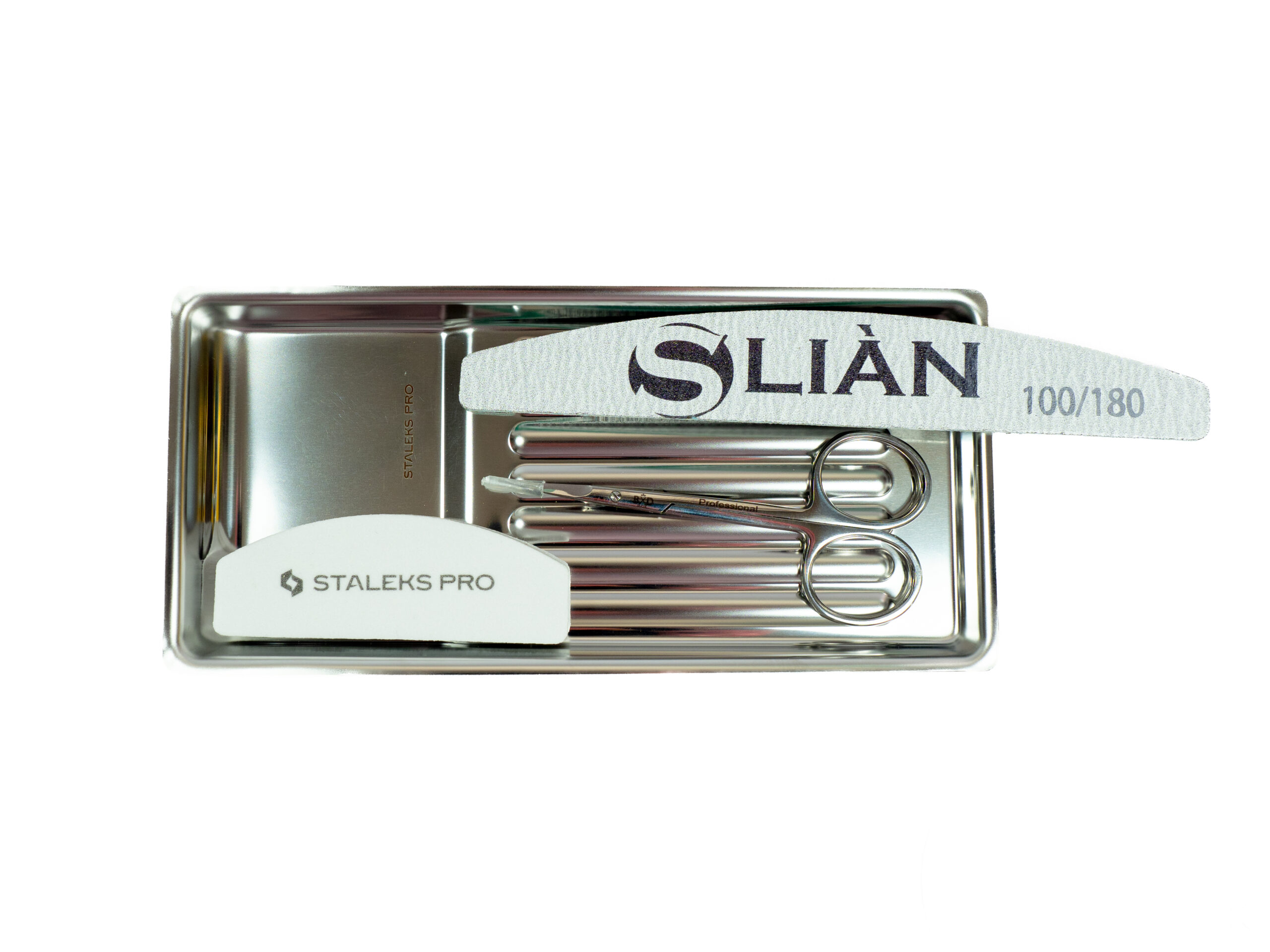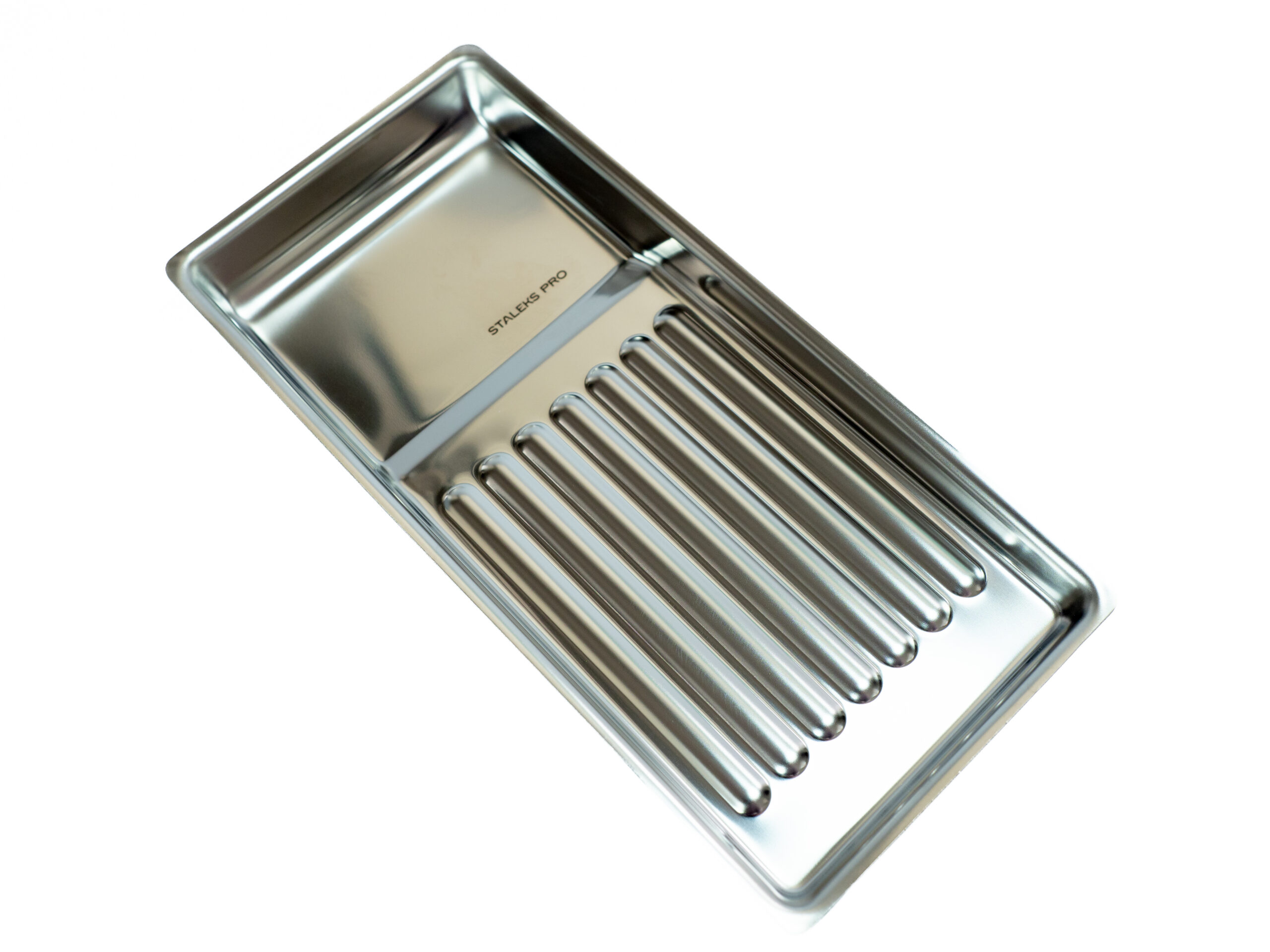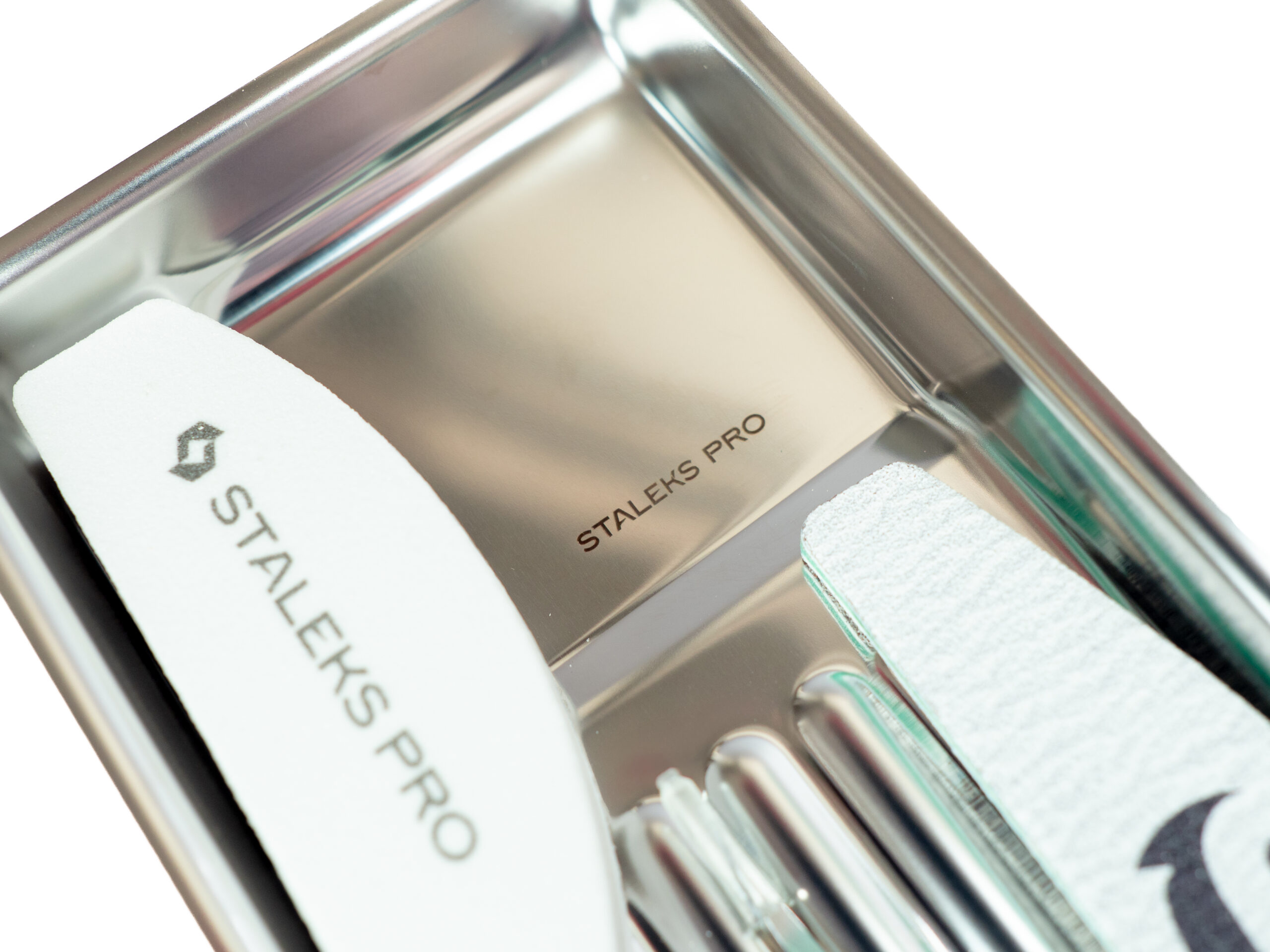 Il vassoio porta strumenti di Staleks è realizzato in acciaio inossidabile di alta qualità, ideale per l’organizzazione, la disinfezione e la conservazione degli strumenti professionali da manicure e pedicure.